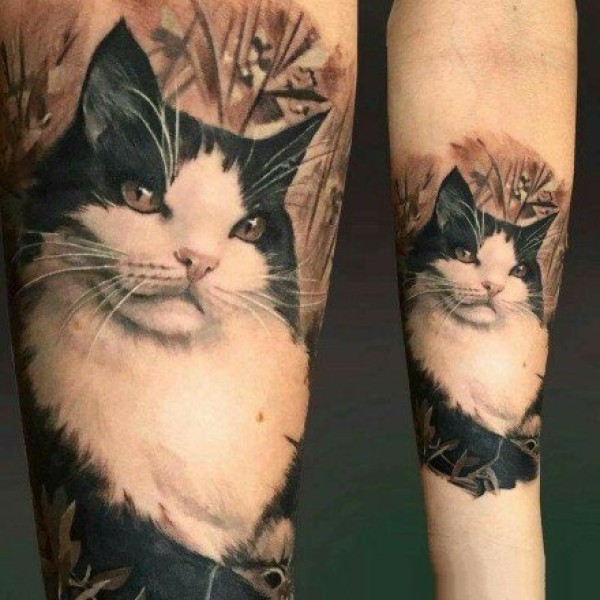 手背猫纹身:9张大花手背的猫纹身图案赏析
