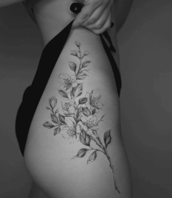 腿部纹身女 9组女性大腿侧部性感纹身作品图