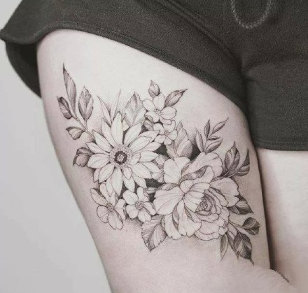 腿部纹身女 9组女性大腿侧部性感纹身作品图
