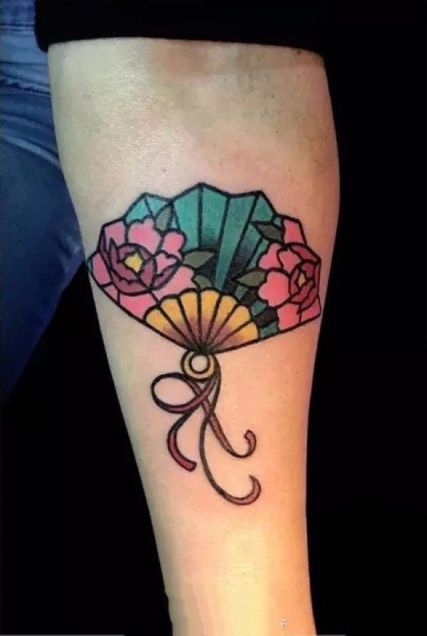 扇子纹身图案 10张彩绘纹身日本艺妓扇子纹身图案