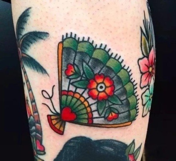 扇子纹身图案 10张彩绘纹身日本艺妓扇子纹身图案
