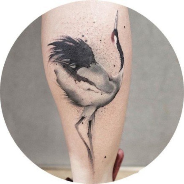仙鹤纹身--中国风水墨元素的一组仙鹤纹身图案作品