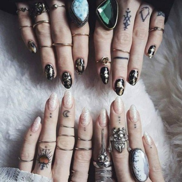 情侣恋人手指关节上的各种指环纹身图案