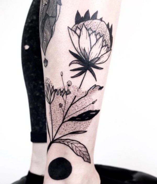 清新花朵腿部纹身图案图片_植物纹身图案大全_纹身图吧