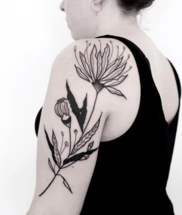 草图感向日葵纹身图案_植物纹身图案大全_纹身图吧