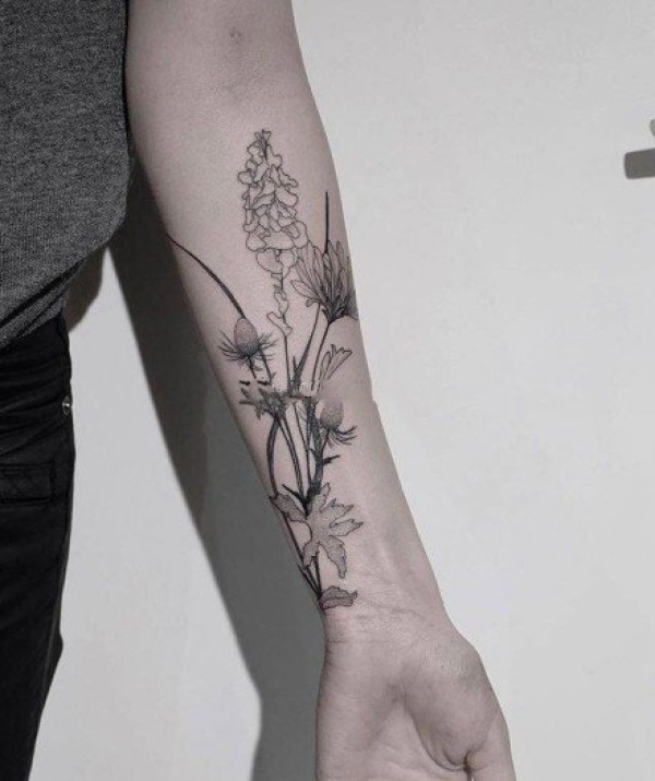 草图感向日葵纹身图案_植物纹身图案大全_纹身图吧
