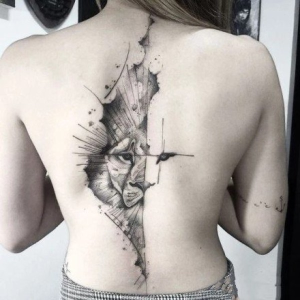 18张女生后背的性感颈椎脊椎骨纹身图案