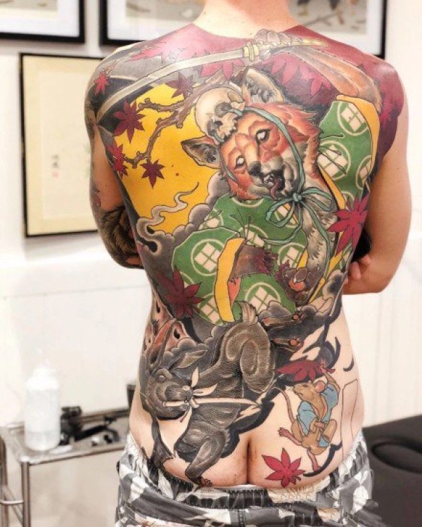 神奇民间传说九尾狐纹身日式纹身花臂和满背纹身图案