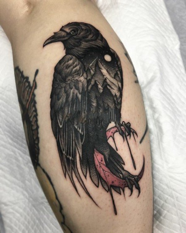 乌鸦主题的9张深黑色乌鸦纹身图案