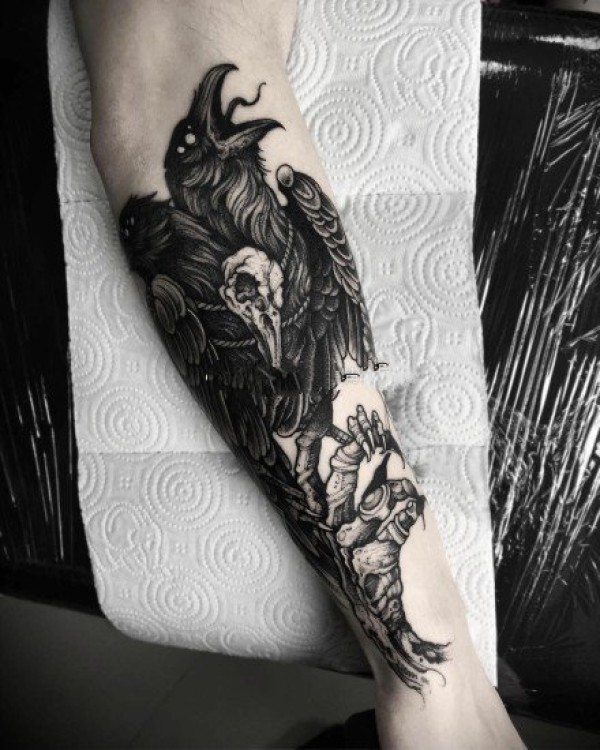 乌鸦主题的9张深黑色乌鸦纹身图案
