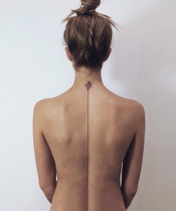 女生后腰纹身黑白灰风格抽象线条纹身图案