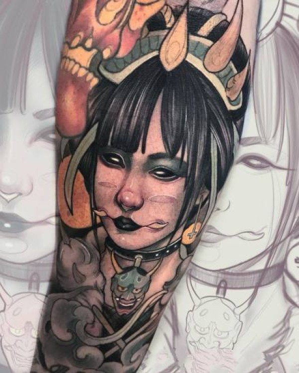 能面万媚纹身手稿_52张日式能剧面具纹身手稿图案素材欣赏