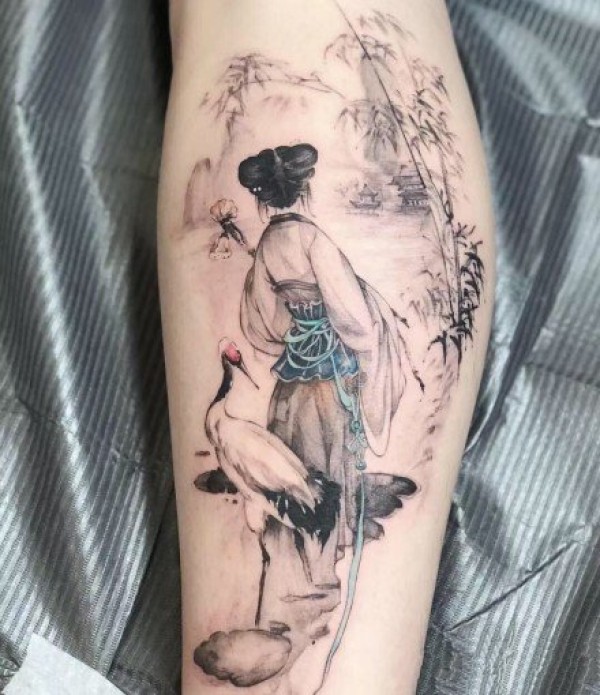 仙鹤纹身--中国风水墨元素的一组仙鹤纹身图案作品
