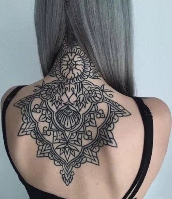 适合女生纹在后背脊柱处的唯美梵花纹身图案