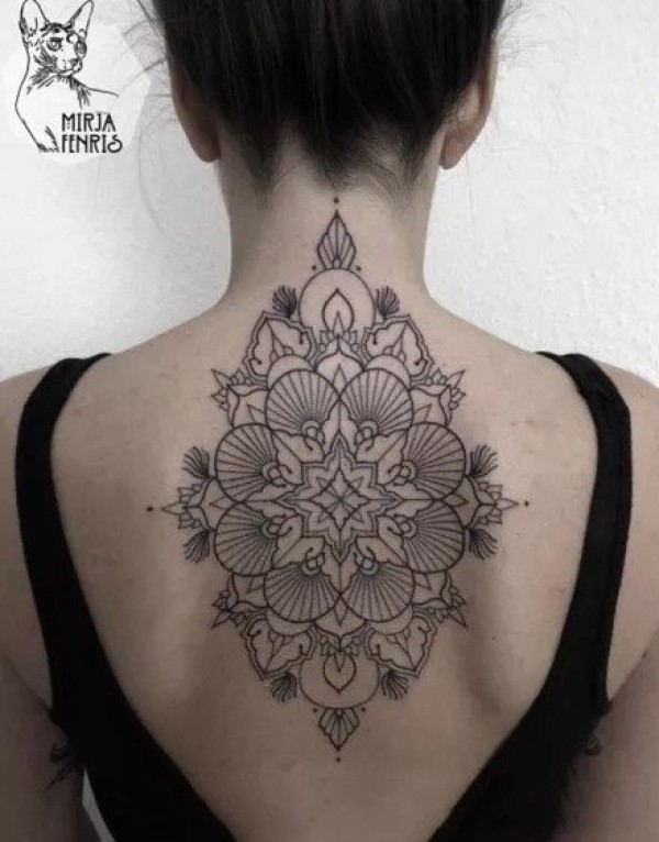 适合女生纹在后背脊柱处的唯美梵花纹身图案