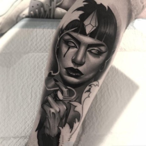 欧美黑灰小图人物骷髅眼睛写实肖像纹身