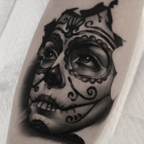 欧美黑灰小图人物骷髅眼睛写实肖像纹身