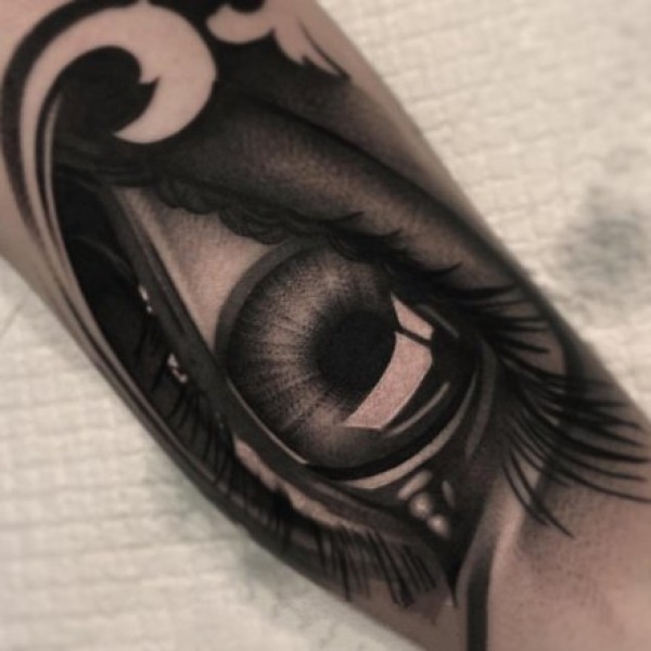 欧美黑灰小图人物骷髅眼睛写实肖像纹身