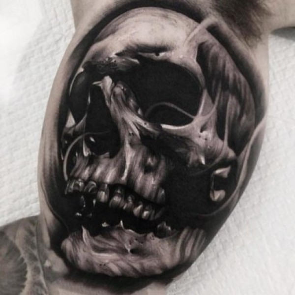 欧美黑灰小图人物骷髅眼睛写实肖像纹身