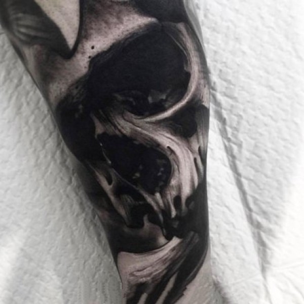 欧美黑灰小图人物骷髅眼睛写实肖像纹身