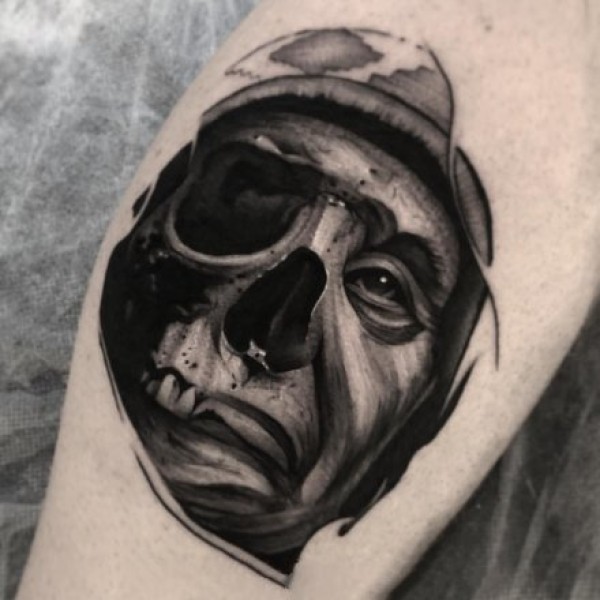 欧美黑灰小图人物骷髅眼睛写实肖像纹身