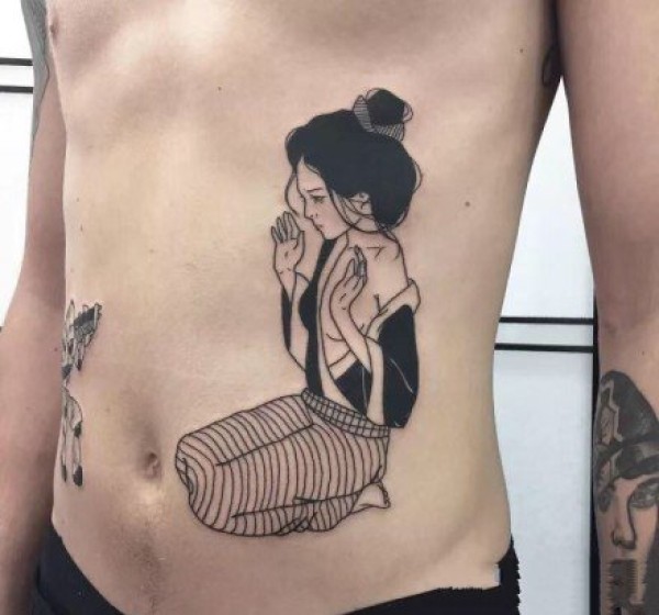 艺伎纹身--一组独特创意的日式艺妓纹身图案作品