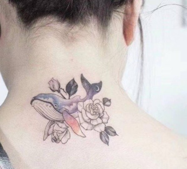 萌萌的鲸鱼纹身--适合女生的小清新鲸鱼纹身图案作品