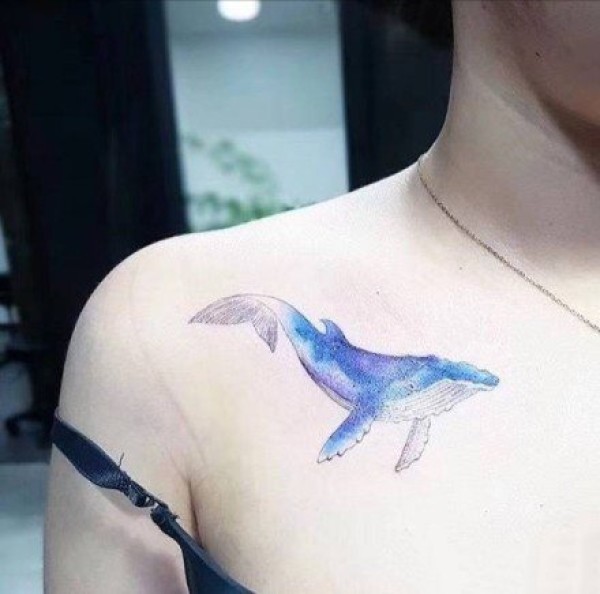 9张漂亮的水彩色鲸鱼纹身图案作品