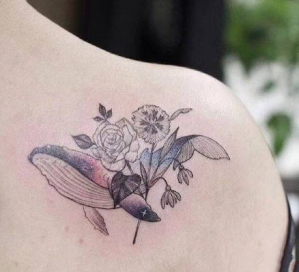 萌萌的鲸鱼纹身--适合女生的小清新鲸鱼纹身图案作品