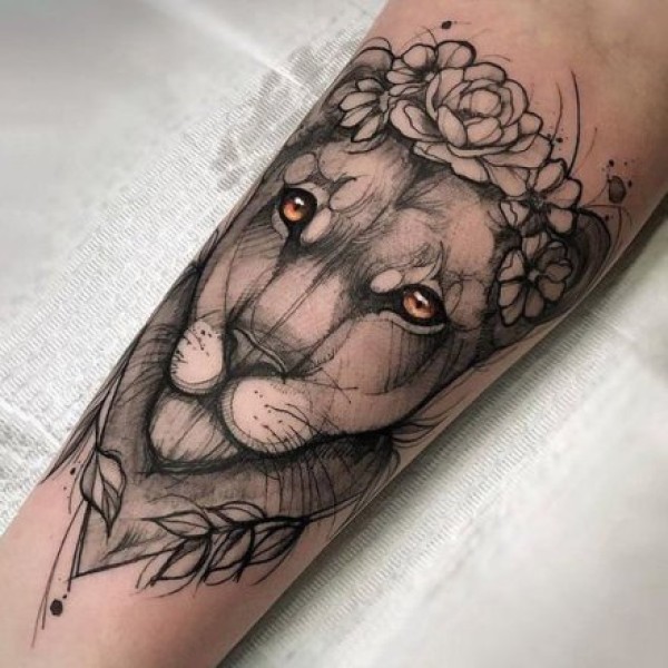 一组好看的狮子纹身设计图案作品9张