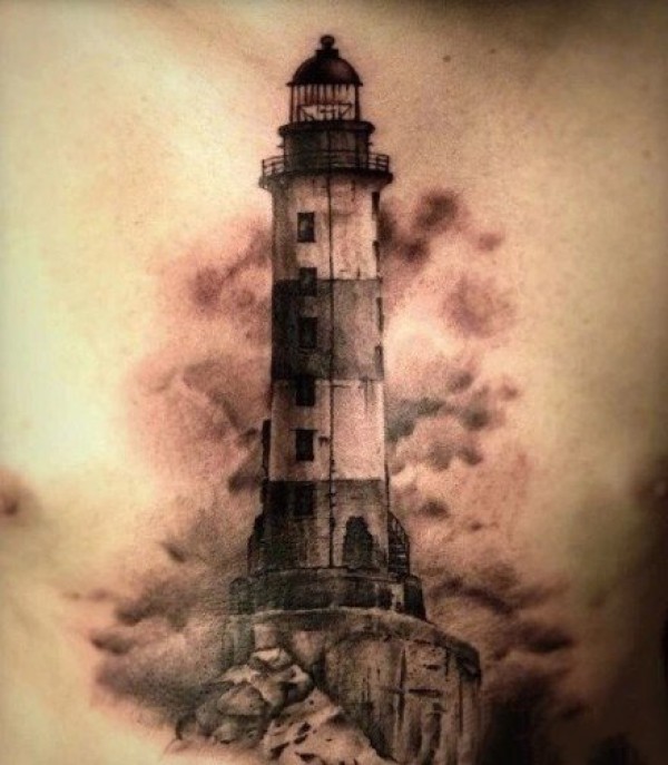 纹身图吧分享一张灯塔玫瑰花文身手稿作品