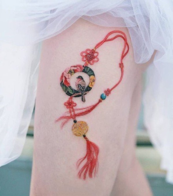 奇葩的满背,绳结组成的蜻蜓纹身图案