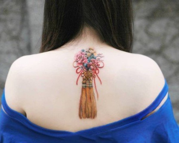 奇葩的满背,绳结组成的蜻蜓纹身图案