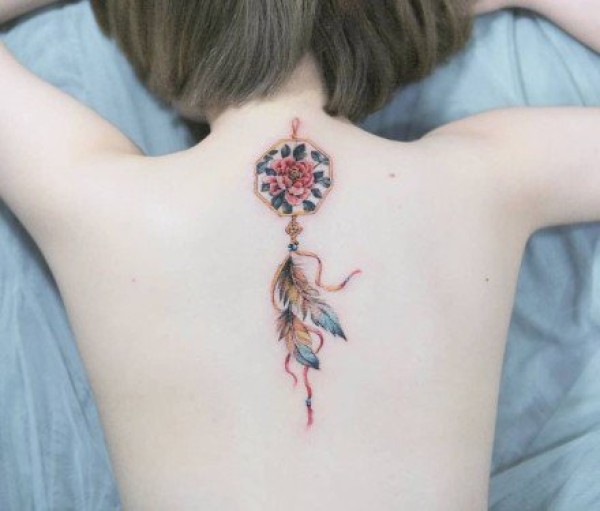 奇葩的满背,绳结组成的蜻蜓纹身图案