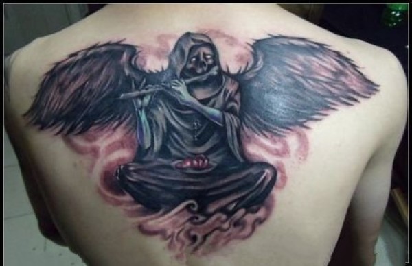 死神纹身 男生小臂上死神和骷髅纹身图片