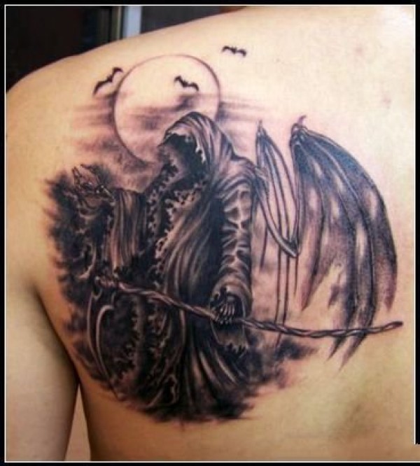 死神纹身 男生小臂上死神和骷髅纹身图片
