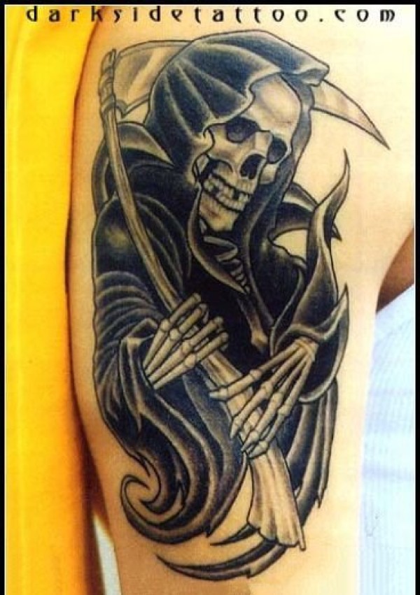 死神纹身 男生小臂上死神和骷髅纹身图片