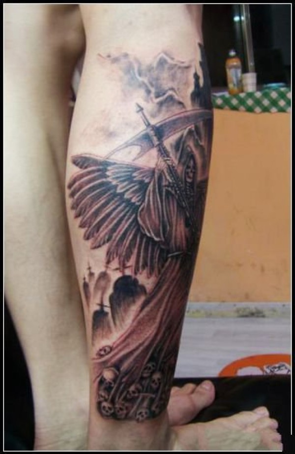 死神纹身 男生小臂上死神和骷髅纹身图片