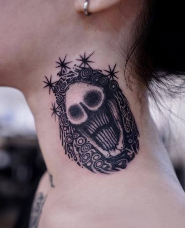 30款男性超帅气的黑灰色脖子纹身图案大全