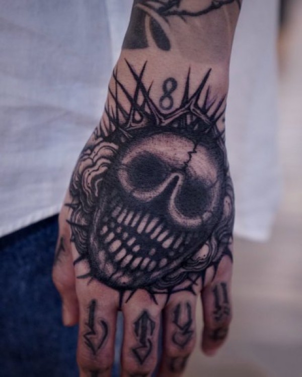 超帅时尚的黑灰骷髅与蛇纹身图案