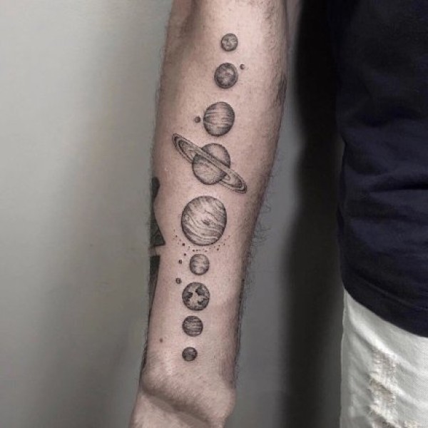 9张纯黑色胳膊上的个性星球主题的纹身图片