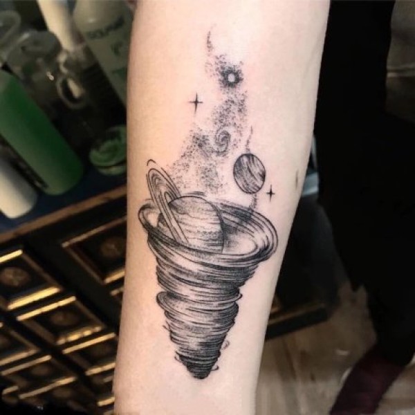 星球主题纹身--9张星球主题的黑灰色星球纹身作品图片欣赏