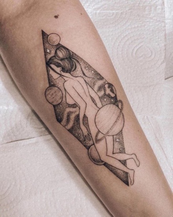9张纯黑色胳膊上的个性星球主题的纹身图片
