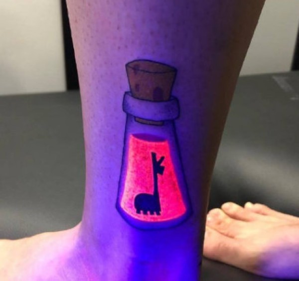 夜晚很漂亮的纹身图案搭配荧光纹身效果图欣赏