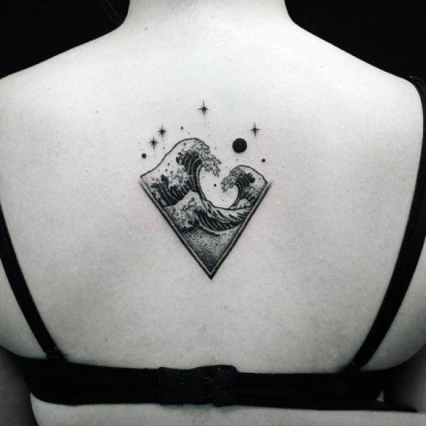 几何点刺小清新个性对称的海浪纹身图案手稿