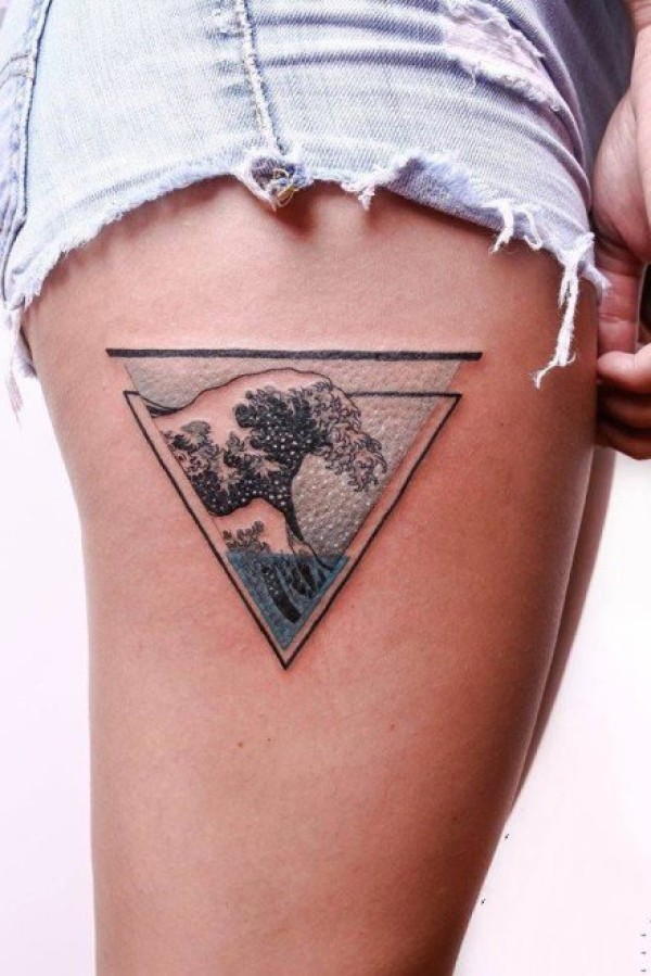 几何点刺小清新个性对称的海浪纹身图案手稿