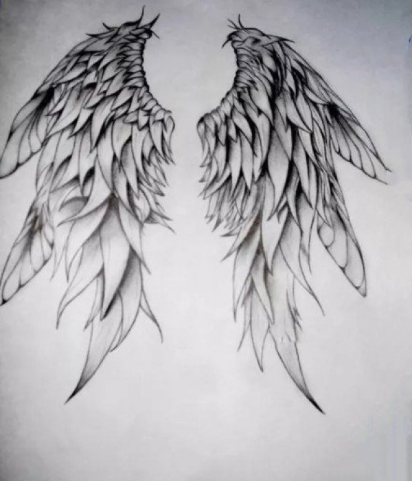 霸气翅膀:适合男性的一组霸气翅膀纹身图案9张