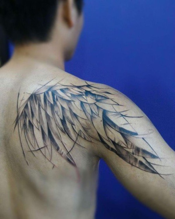 霸气翅膀:适合男性的一组霸气翅膀纹身图案9张