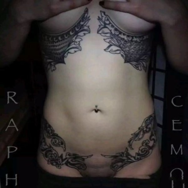 9张女性腹部剖腹产遮盖疤痕纹身作品