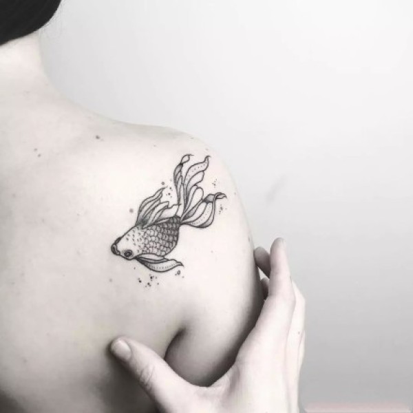 金鱼纹身 漂亮的9张唯美彩色小金鱼纹身图案